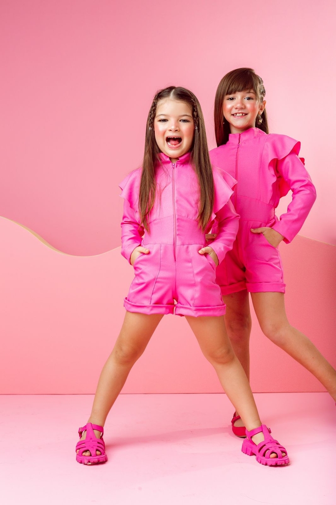 O macaquinho Barbie Nikki é pura beleza e conforto. Confeccionado em crepe de alfaiataria, zíper frontal, amplos babados que saem do busto até as costas, garantindo muita beleza e estilo. Impossível passar despercebida com ele!